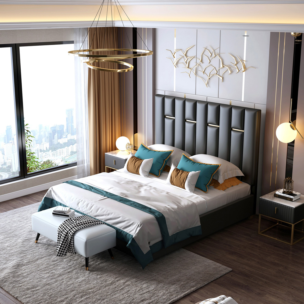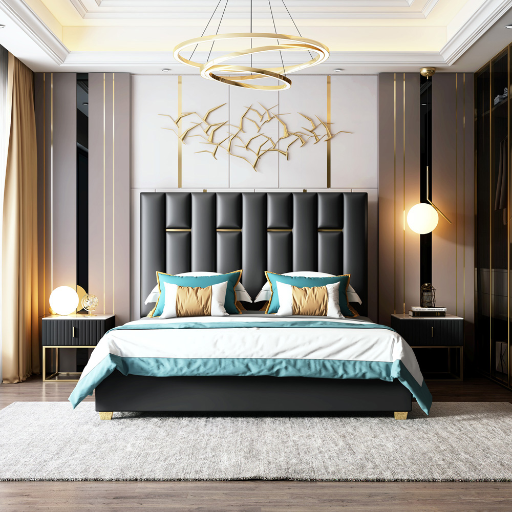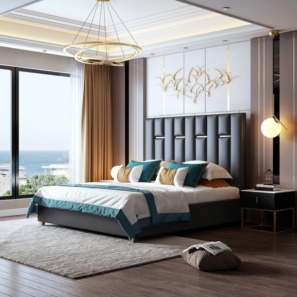 The foundation of this fully assembled bed is an engineered wooden frame. Overall, the sleek outlines and modish