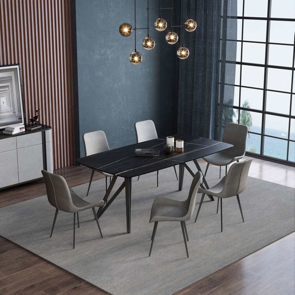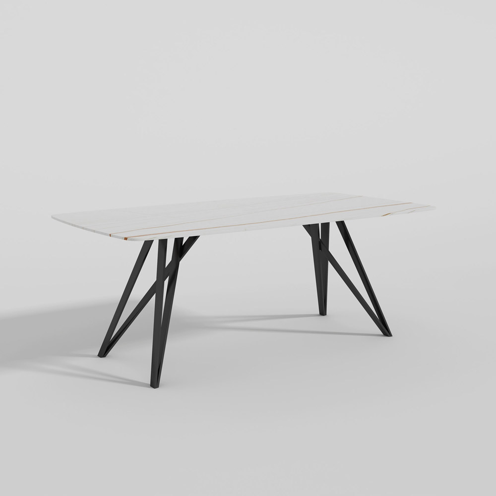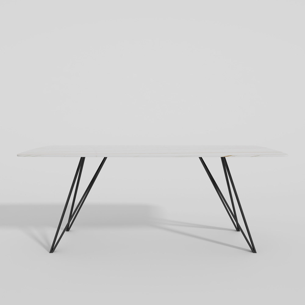 Sintered stone top with carbon steel base.